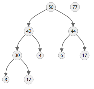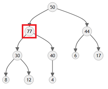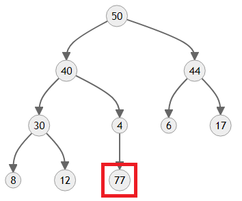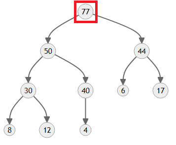 이 경우에는 77이 가장 큰 값이니까 맨 꼭대기까지 올라갔네요.