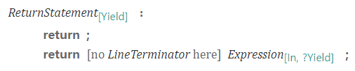 문법상 return과 Expression 사이에는 LineTerminator가 있으면 안 됨.