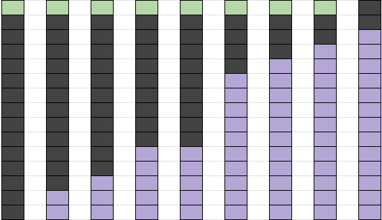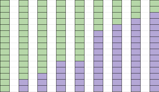 보라색 세로줄은 각 후보의 현재 득표 수입니다. 다른 후보는 9명이고, 득표수를 배열로 나타내면 [0, 2, 3, 5, 5, 10, 11, 12, 13] 이 되겠네요. 정렬은 보기 편하라고 해놓았습니다.