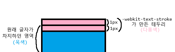 '참' 글자에서 떨어져 있던 초성, 중성, 종성이 붙은 걸로 봐서 글자가 뚱뚱해진 건 맞는데 원래 글자도 얇아진 것 같이 보입니다. 이게 바로 -webkit-text-stroke의 문제점인데요. 글자 경계선을 기준으로 안쪽과 바깥쪽을 반반씩 먹으면서 커집니다.